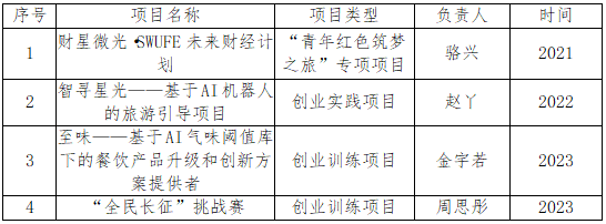 表4:大学生创业训练计划项目清单