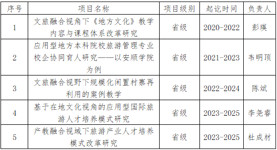 学院人才培养目标符合学校定位,以培育具备良好职业道德、专业技能及创新能力的专业人才为目标,强调实践能力与综合素质的培养。围绕应用型人才培养任务,依托“华中师范大学国家文化产业研究中心安顺旅游文化产业研究基地”“安顺旅游文化产业研究基地”、教育部“黄果树大学生校外实践教育基地”、教育厅“安顺屯堡傩雕旅游商品研发基地”等平台,加上省内外20多家学生实习实践基地,形成了综合立体的学生实习实践平台,强化实践教学,促进学生全面发展。