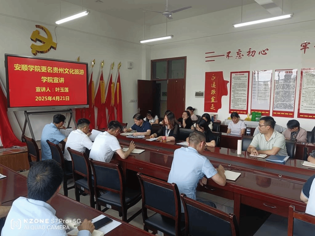 2025年4月21日下午,数理学院党委叶玉莲书记在数理学院2-17会议室主持召开数理学院第九周教职工例会,并向本院全体教职工作“安顺学院更名贵州文化旅游学院”宣讲。