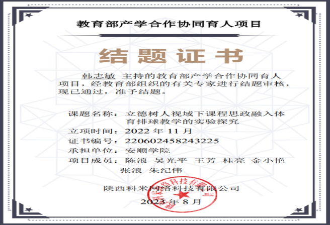 科研反哺教学,依托教育部产学研项目,利用信息传感技术捕捉体育专业学生课堂表现,优化课堂体验;结合学生实际,组织实践活动,以科研推动公共体育教育教学改革,让学生“享受乐趣、增强体质、健全人格、锤炼意志”,发挥体育在促进身体、心理、社会适应和思想道德等方面的“全健康”协同育人功能,促进体育健康行为养成。学院以体育文化节为抓手,以校级体育赛事为依托,举办校运动会、球类联赛、传统体育、校园路跑、啦啦操等群众体育活动,探索线上线下混合体育活动新模式,让参加体育文化活动成为安院学子的校园体育日常。构建了“课内与课外”协同育人的公共体育教学体系,搭建了“常态化、常规化、特色化”三位一体的教学资源空间,建立了“多维度、全过程”的多元评价体系。学院每年举办约40多项阳光体育赛事,吸引超过5万人次参与,营造出浓厚的校园体育文化氛围。
