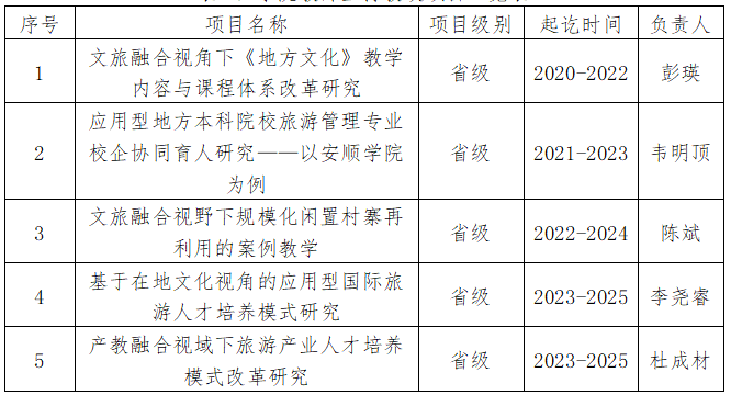 学院人才培养目标符合学校的定位,以培育具备良好职业道德、专业技能及创新能力的专业人才为目标,强调实践能力与综合素质的培养。围绕应用型人才培养任务,依托“华中师范大学国家文化产业研究中心安顺旅游文化产业研究基地”“安顺旅游文化产业研究基地”、教育部“黄果树大学生校外实践教育基地”、教育厅“安顺屯堡傩雕旅游商品研发基地”等平台,加上省内外20多家学生实习实践基地,形成了综合立体的学生实习实践平台,强化实践教学,促进学生全面发展。