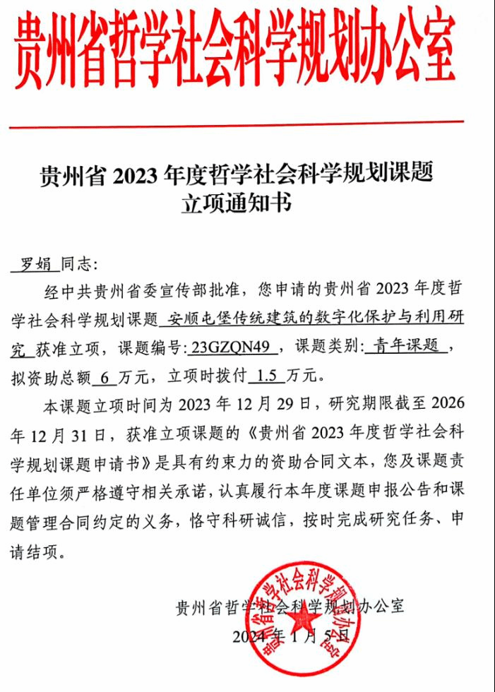 艺术学院对自己地方文化负有研究和保护以及开发的责任,近年来,艺术学院教师在科研上加大了对地方文化的研究力度,发表了多篇研究地方文化的论文,并开展课题研究,我院教师立项并结题有赵蓉燕的贵州省教育规划课题《民族文化进课堂教育教学改革—以扎染教学为例》;谢朝玺的贵州省教育厅高校人文社会科学研究项目《贵州民间艺术校园传承研究》;赵蓉燕的教育厅项目《美术学视野下安顺屯堡民宿研究》,这些项目很好地支撑了地方文化的传承和保护。目前我院多位老师正在围绕地方文化申报国家级、省级课题研究,为安顺的乡村振兴赋予文化内涵。