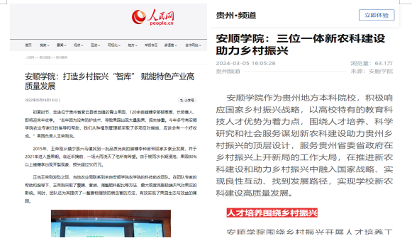 人民日报、人民网、财经头条、安顺日报、关岭新闻等媒体多次对我院人才培养成效进行报道。
