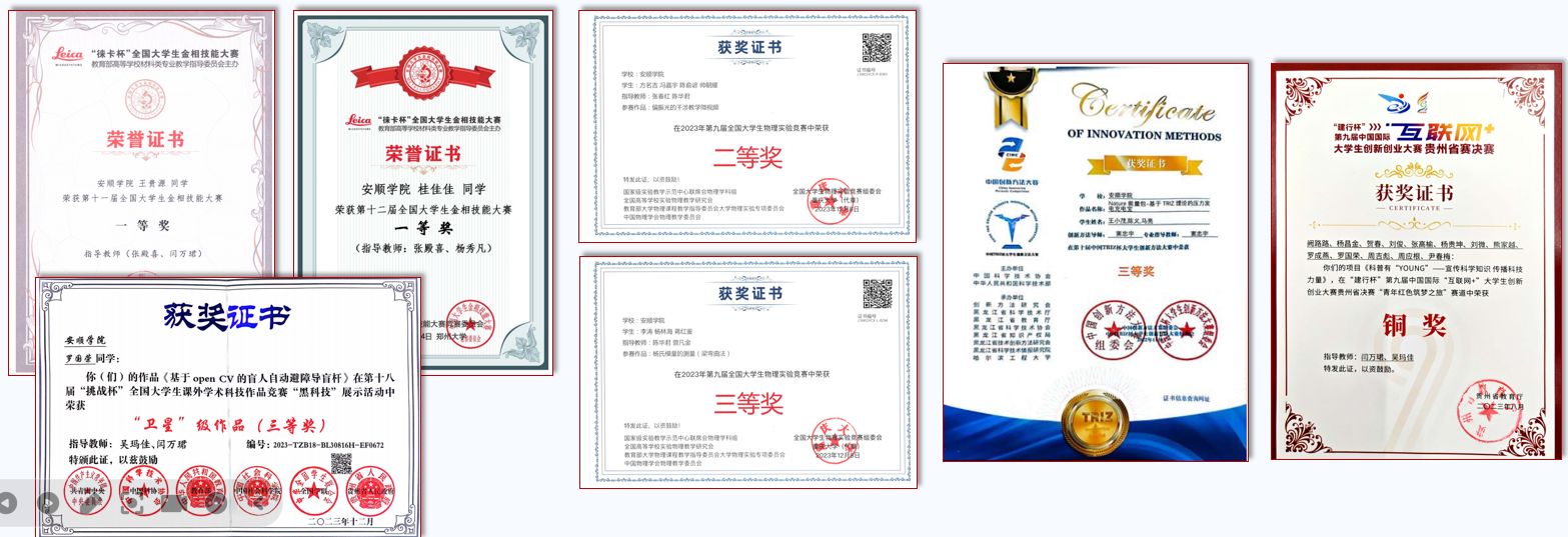 学院践行“以赛促教、以赛促学”理念,积极组织学生参与各类学科竞赛。共获国家级、省部级奖项近180项,获奖数量和质量连年攀升。在全国大学生金相技能大赛、全国大学生物理实验竞赛、全国大学生电子设计大赛、“挑战杯”、全国大学生信息安全与对抗技术竞赛等顶级赛事中屡创佳绩,仅2024年即获省部级以上奖项69项,其中国家级奖项10项,充分展现了学生扎实的专业基础和卓越的创新能力。
