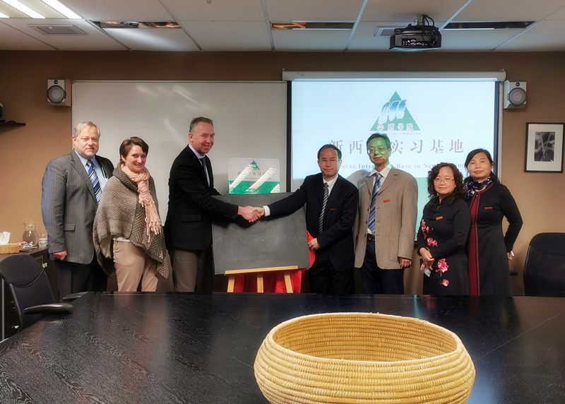 党委书记罗荣彬(左)与新西兰商业理工学院签订战略合作备忘录