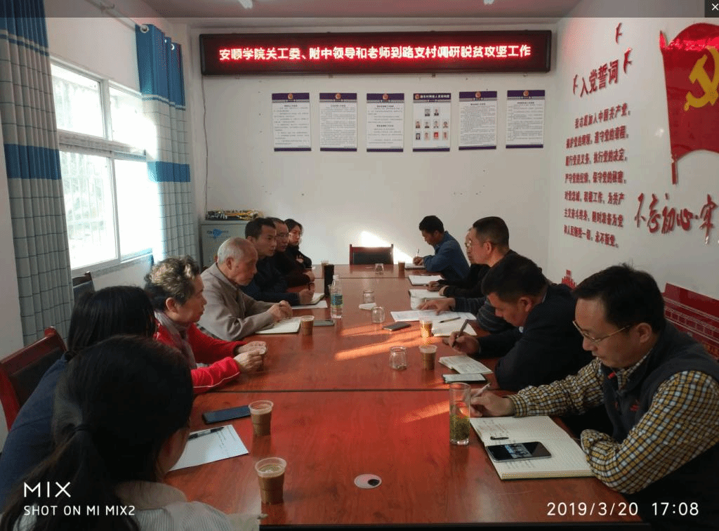 2019年3月20日下午,安顺学院关工委常务副主任杨通邦、附中党委书记陈宇一行8人到安顺学院同步小康驻村帮扶点——关岭县沙营镇路支村开展脱贫攻坚工作调研并慰问精准扶贫户。