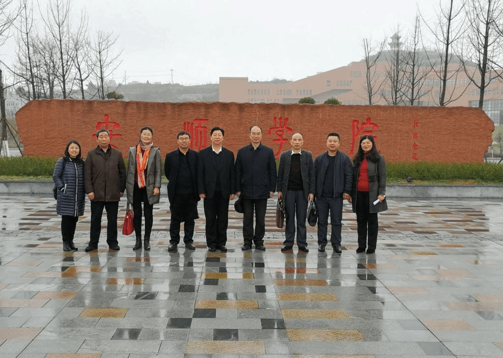 六盘水师范学院副校长董明建(中)一行与副校长顾名宇(右四)及相关部门负责人合影