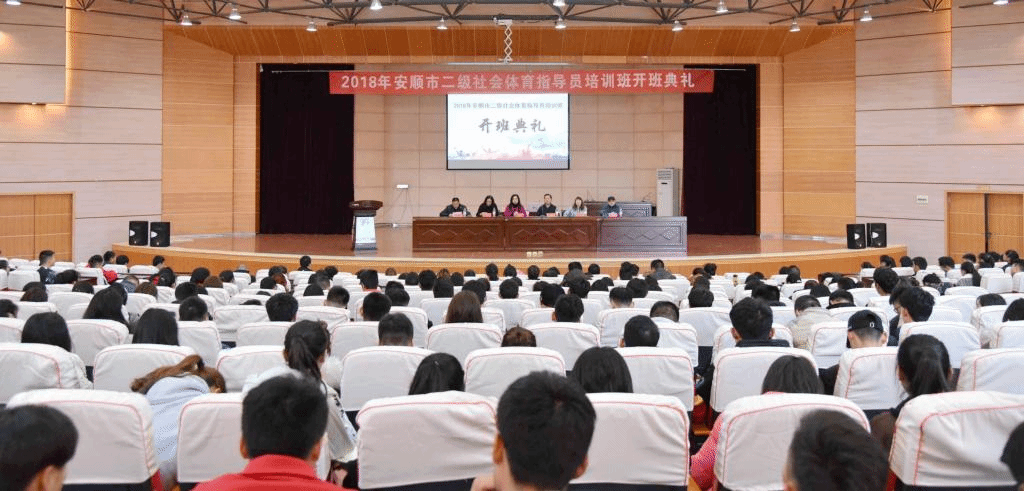 11月15日,安顺市2018年国家二级社会体育指导员培训班在安顺学院学术报告厅举行开班仪式。安顺学院体育学院党总支书记孙黔、院长邓文红、安顺市体育局群体科科长赵雯、任课教师、安顺各县区及安顺学院学员共300余人参加开班典礼。