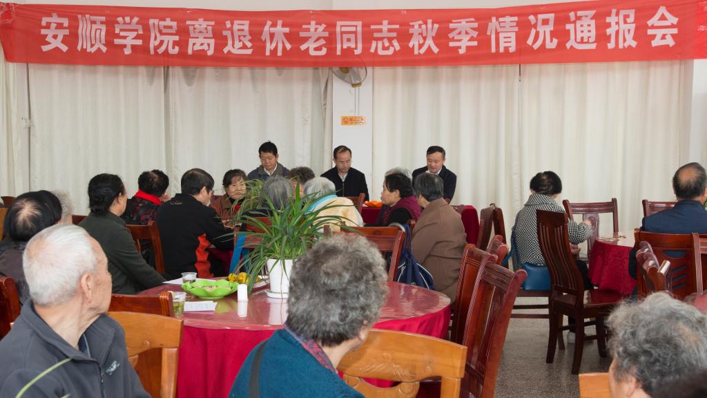 10月17日下午,安顺学院重阳节慰问离退休老同志暨秋季情况通报会在学校教工食堂二楼举行。安顺学院党委书记罗荣彬、校长吴次南、党委副书记陶文彩及100余名离退休老同志参加会议。会议由吴次南校长主持。