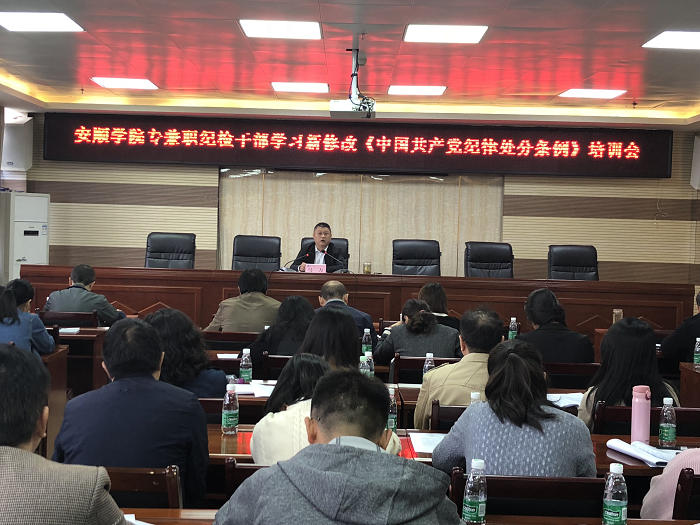 安顺学院专兼职纪检干部学习新修订《中国共产党纪律处分条例》培训会会场