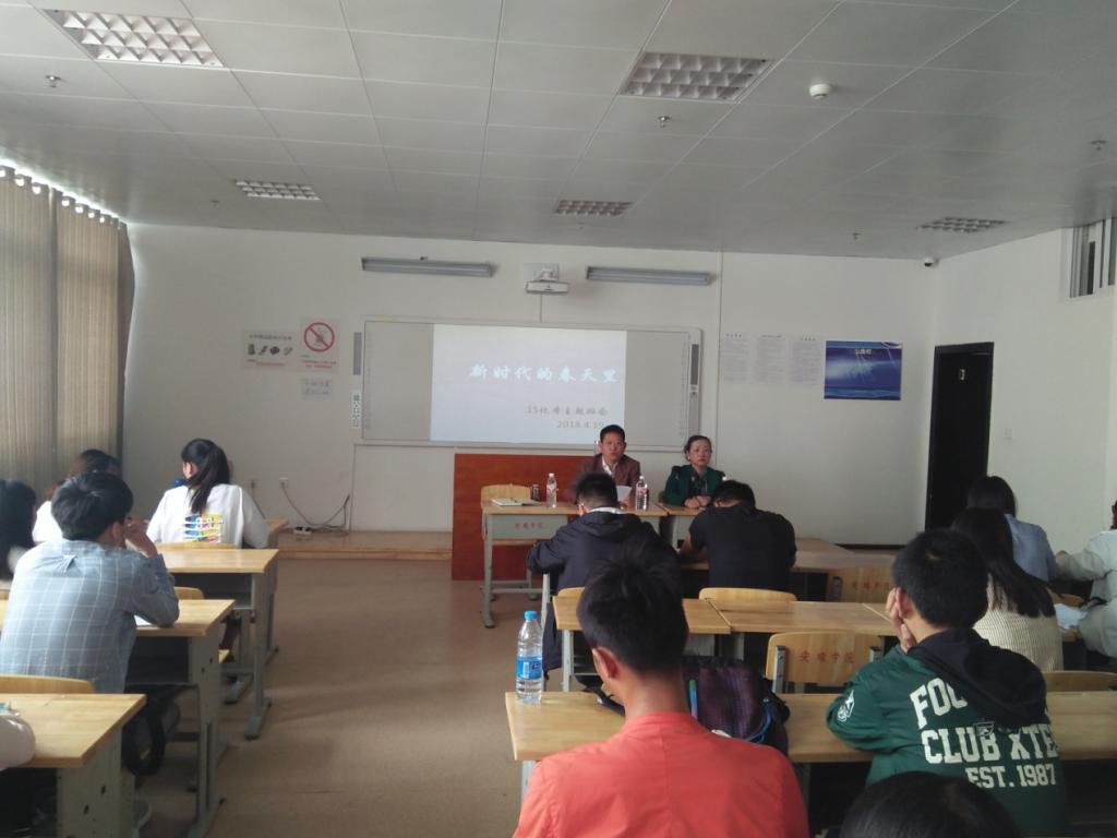 2018年4月20日下午,党委副书记陶文彩作为班级导师参加化学化工学院2015级化学班在特教0604教室召开的“新时代的春天里”主题班会。化学化工学院党总支杨莉莉及班主任、全班同学参加班会。