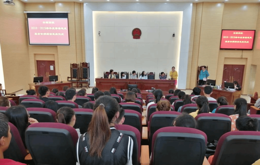 2019年4月19日上午,2018-2019学年香港慈恩基金会捐助金发放仪式在新教楼模拟法庭举行。香港慈恩基金会陆莹佩女士一行6人、安顺学院学生资助管理中心全体成员及94名受助学生参加发放仪式。