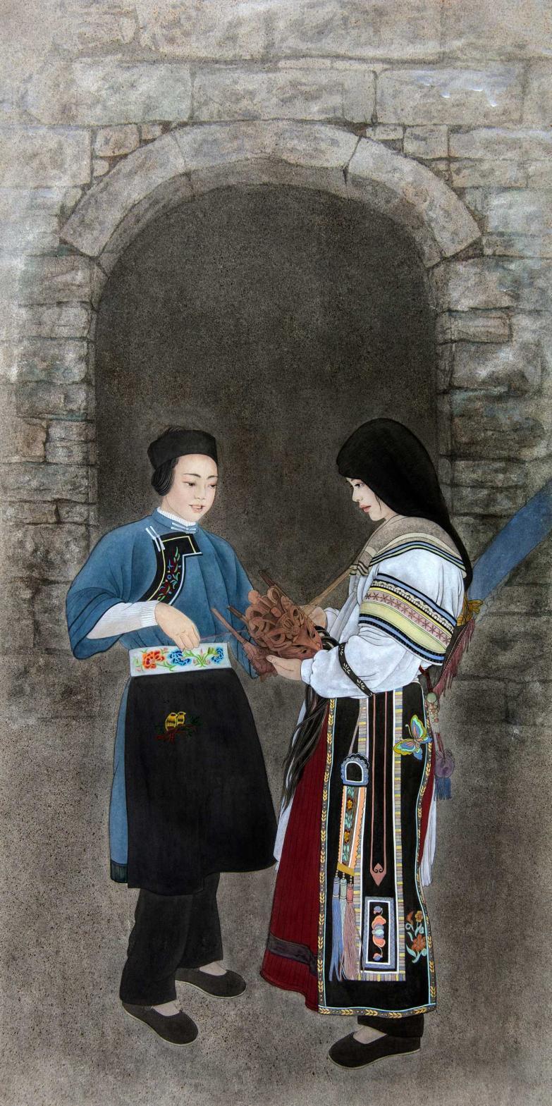 杨洋布面丙烯《白鸟衣传承人姜老本》