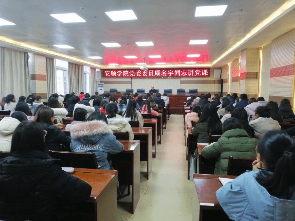 2018年12月10日下午,安顺学院副校长顾名宇在特教大楼七楼会议室为教育学部师生党员、拟发展对象、入党积极分子讲党课。
