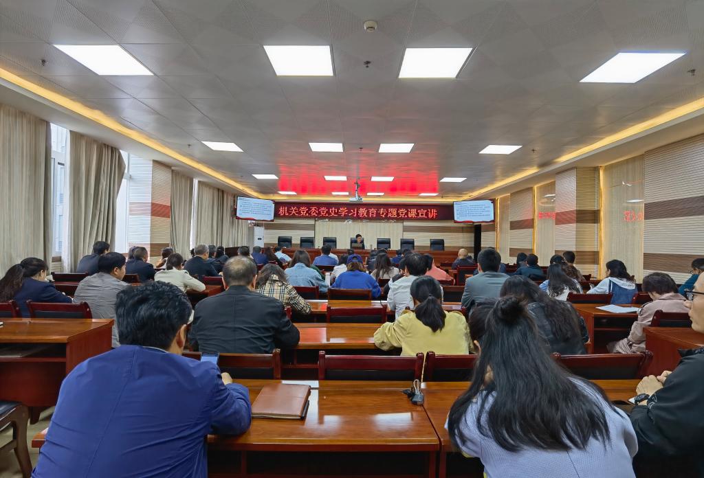 6月1日下午,安顺学院机关党委在特教大楼7楼会议室开展党史学习教育宣讲。机关各党支部近100党员听讲。