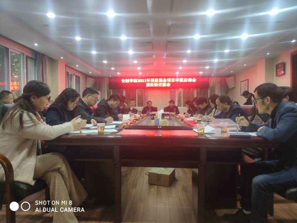 2020年10月28日上午,安顺学院2021年国家基金项目申报启动会暨经验交流会在行政楼二楼会议室召开。安顺学院党委书记罗荣彬、校长陈云坤、副校长张来出席会议,各二级学院院长及分管科研院领导,部分有意申请国家项目老师,科研处全体工作人员参会。会议由陈云坤主持。