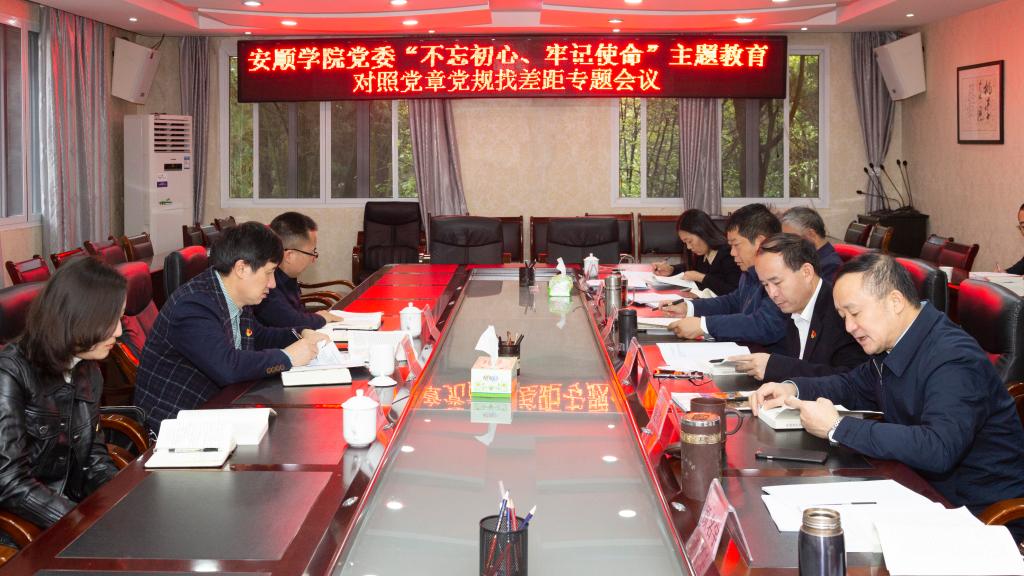 按照中央、省委关于第二批“不忘初心、牢记使命”主题教育工作总体安排和部署,11月6日,安顺学院党委召开对照党章党规找差距专题会议,省委第四巡回指导组雷和林、张忠朝,市委主题教育办徐雪花到会指导,安顺学院党委书记罗荣彬主持会议。