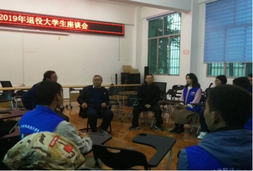 2019年10月29日晚,安顺学院在电教大楼召开2019年退役大学生座谈会。安顺学院副校长令狐荣涛,退役复学大学生代表、国旗护卫队成员和学生工作部(学生工作处)、武装部有关负责人参加座谈会。