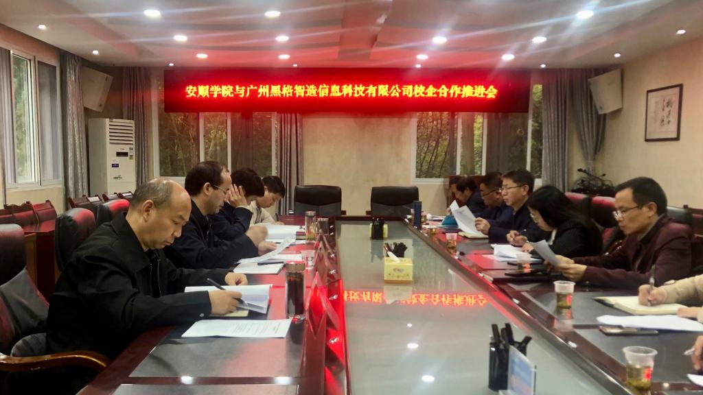 会议听取了相关部门就安顺学院与广州黑格智造信息科技有限公司校企合作的推进情况的汇报。