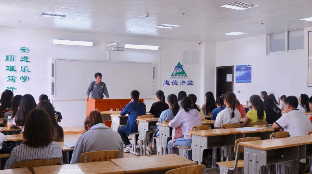 安顺学院道德讲堂开展“从中美贸易战看中美关系”专题讲座现场