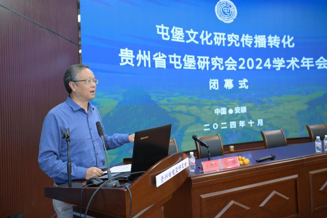 安顺学院贵州省屯堡文化研究中心主任、贵州省屯堡研究会会长吴羽作大会总结发言,回顾屯堡文化研究的二十余载,在屯堡文化研究的各个领域取得了成绩,结合省委、省政府大力打造“四大文化”的东风,希望权威专家带动年轻学者,把屯堡文化研究向纵深发展,在屯堡文化的传播、转化上做足文章,为地方文化研究和经济发展作出贡献。(文/图:屯研中心 李立洪/王键)