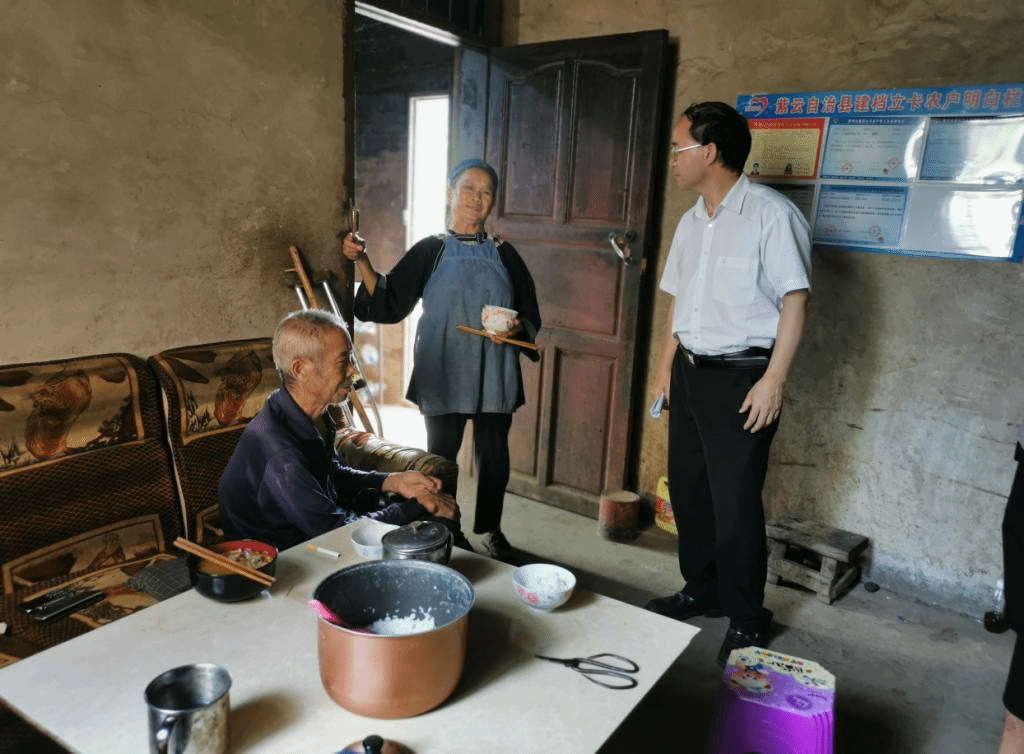 在喜湾村罗荣彬书记深入贫困户家中暗访,开展访谈,了解驻村工作组的工作情况,详细询问小孩读书情况和粮食是否有保障,重点查看住房安全、饮水安全等问题。罗荣彬书记鼓励建档立卡贫困户要配合驻村工作组工作,早日走向致富的道路。