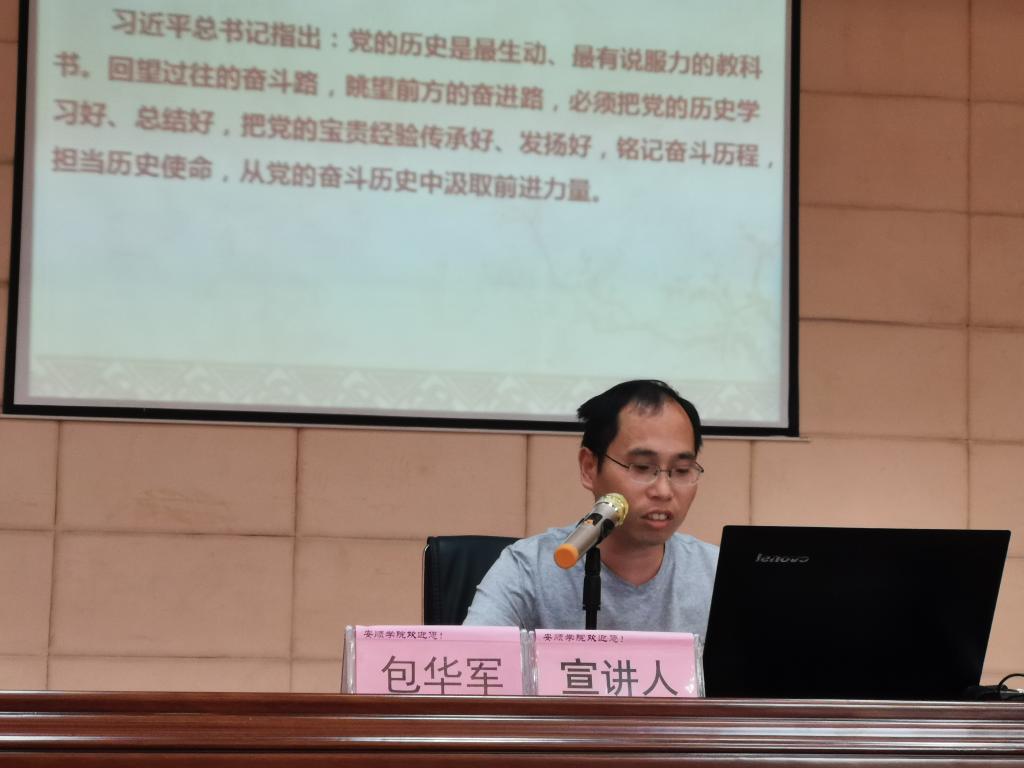 贵州省哲学社会科学重大委托项目《王若飞对中国共产党的理论贡献》课题的主要参与人、安顺市教育系统百名名师宣讲团成员、安顺学院党史学习教育宣讲团成员、马克思主义学院副教授包华军博士以《王若飞对中国共产党的理论贡献》为题作宣讲