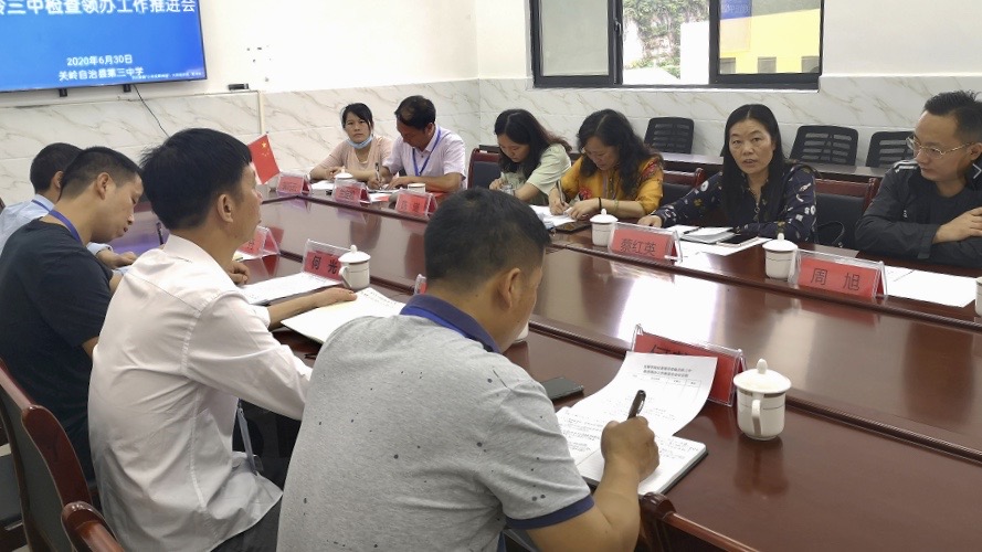 2020年6月30日上午,安顺学院纪委书记、监察专员蔡红英一行到关岭三中监督检查安顺学院领办关岭三中工作开展情况,关岭三中班子成员、安顺学院领办关岭三中工作站全体人员参加座谈会。