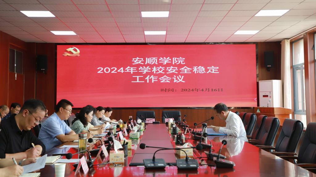 为深入贯彻落实立德树人根本任务,共筑安全防线,守护校园平安,2024年4月16日,安顺学院2024年度校园安全稳定工作会议在安道楼505会议室召开。安顺学院各相关部门主要负责人、各二级学院党委书记、保卫处相关人员参加会议。会议由安顺学院党委书记罗荣彬主持。