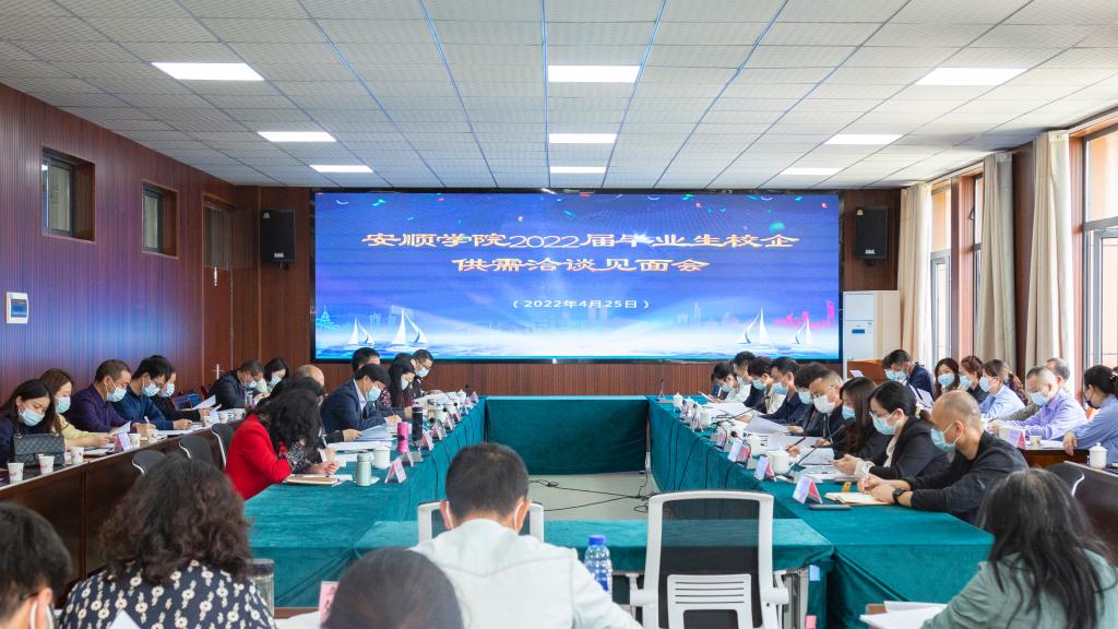 为给我校毕业生搭建更好就业平台并满足广大企事业单位对各类人才的需求,促进我校毕业生尽早就业、高质量就业,2022年4月25日,安顺学院组织召开2022届毕业生校企供需洽谈见面会。安顺学院校长陈云坤、党委副书记陶文彩、副校长郭本华、纪委书记蔡红英,副校长韦英、殷红敏出席会议。党政办、宣传部、团委主要负责人,各基层党委书记、各二级学院院长,就业专干、招生就业处全体工作人员参加会议。贵阳市文化旅游局、安顺市人社局、安顺市军民融合办、安顺市就业局、安顺市西秀区就业局、安顺市经开区劳保局、安顺市西秀区产业园区、安顺人力资源服务产业园、011科创谷以及市军民融合办和9家安顺本地企业受邀参会。会议由殷红敏主持。