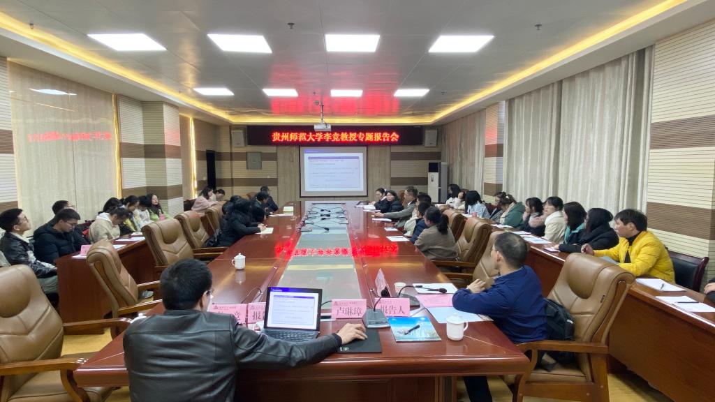 2020年11月26日下午,李竞应邀在安顺学院特教大楼六楼会议室作题为《Large-Time Behavior of Solutions to 1DCompressible Navier-Stokes System in Unbounded Domains with Large Data》专题学术报告。报告由安顺学院数学与计算机科学学院党委副书记钱淑渠主持,数学与计算机科学学院全体教师及部分学生代表参会。