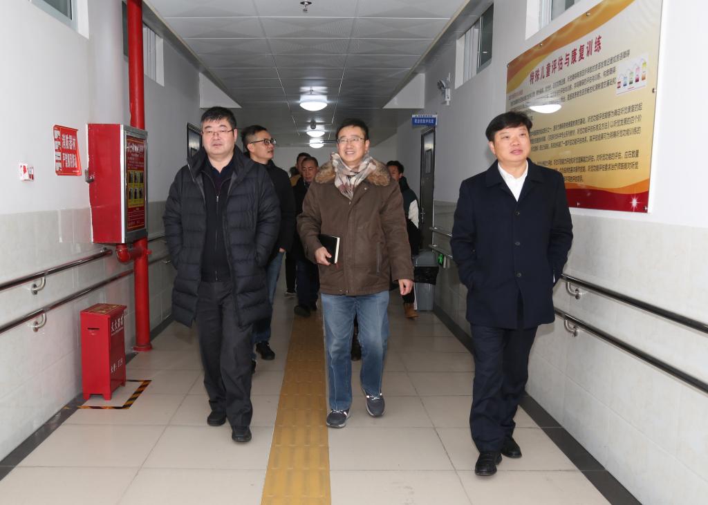 会前,周进一行实地考察了特殊教育学院各个特殊教育功能室。