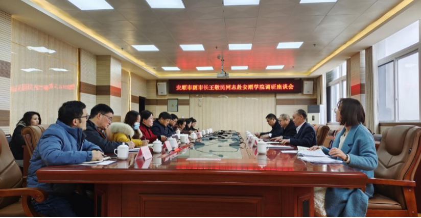 2021年3月2日下午,安顺市委常委、市政府副市长王敬民,副秘书长张勇、市科技局副局长杨守望一行到安顺学院调研指导工作。安顺学院校长陈云坤、副校长张来,教务处、实验管理中心、科研处、数理学院等有关负责人陪同调研座谈。