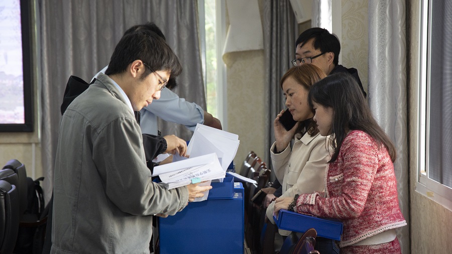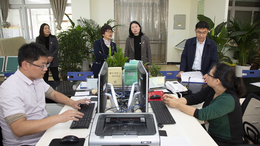 中午,调研督查汇报会在安顺学院行政楼二楼会议室召开。调研督查组全体成员,安顺学院校长陈云坤,纪委书记、监察专员蔡红英,党委委员、宣传部部长殷红敏出席会议。令狐彩桃主持会议,并就调研督查目的、内容和方式作了说明。陈云坤就安顺学院学生教育管理服务、学籍学历管理服务相关工作开展情况作了汇报。汇报后,调研督查组分成两组,分别查阅印证资料和实地考察安顺学院“一站式”学生事务服务中心。
