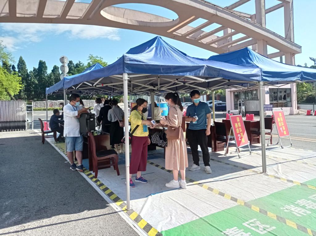 考生在校门口接受体温检查