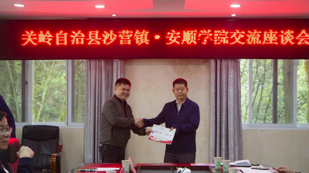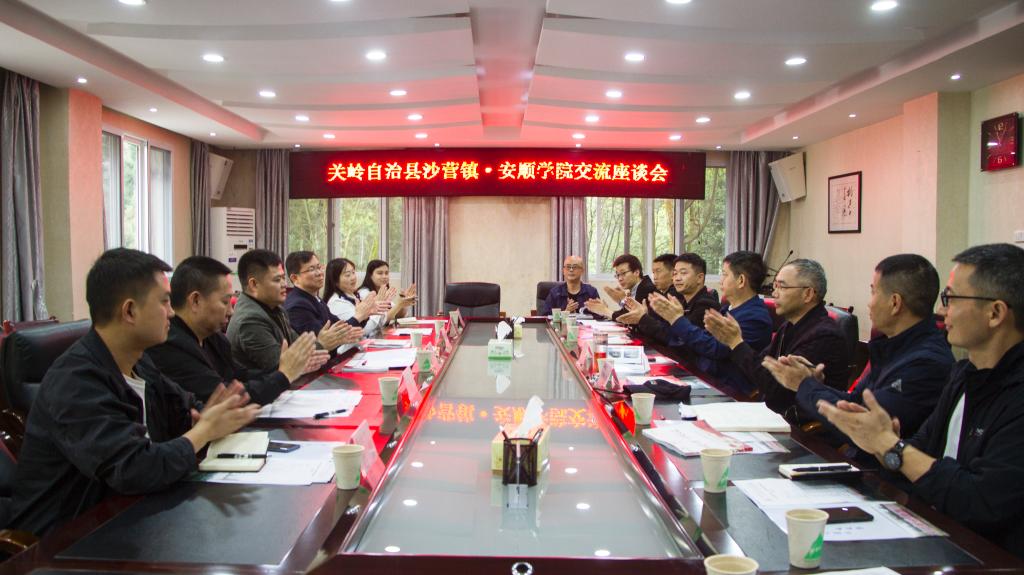 2021年5月31日上午,关岭自治县沙营镇党委书记杨秀云、镇长吴洪平、镇人大主席聂权云等一行8人到安顺学院交流座谈并赠送沙营镇脱贫攻坚纪实画册。安顺学院党委副书记陶文彩,党委组织部部长何朝越,后勤处处长陈宇,路支村历任驻村队员参加座谈会。座谈会由何朝越部长主持。