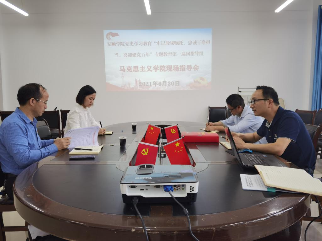 6月30日上午,安顺学院党史学习教育暨“牢记殷切嘱托、忠诚干净担当、喜迎建党百年”专题教育第一巡回指导组组长、学校党委书记罗荣彬带队到马克思主义学院开展党史学习教育巡回指导工作。