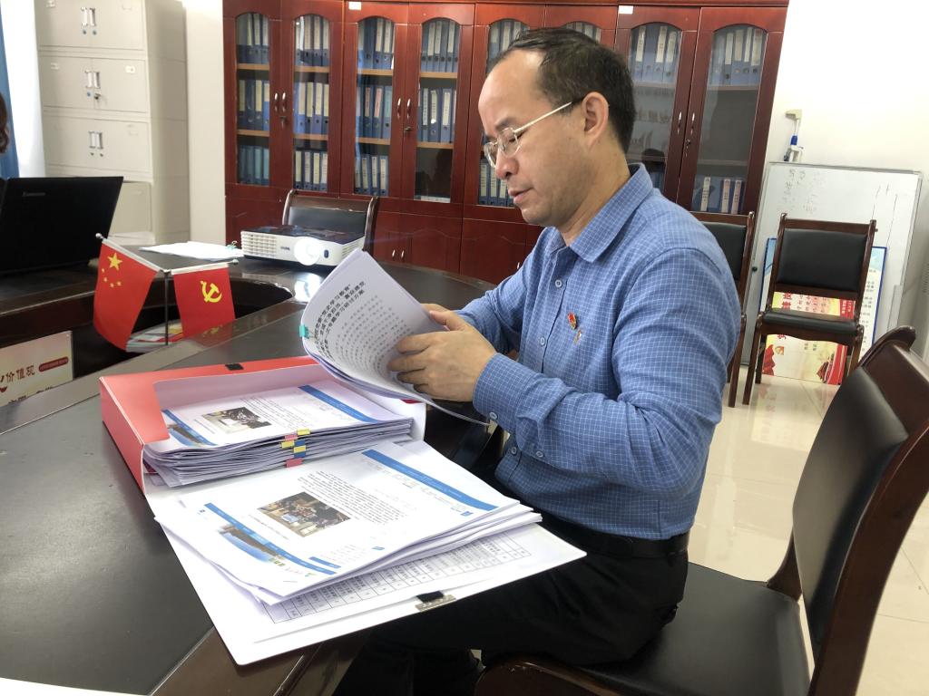 安顺学院党史学习教育暨“牢记殷切嘱托、忠诚干净担当、喜迎建党百年”专题教育第一巡回指导组组长、学校党委书记罗荣彬查阅资料
