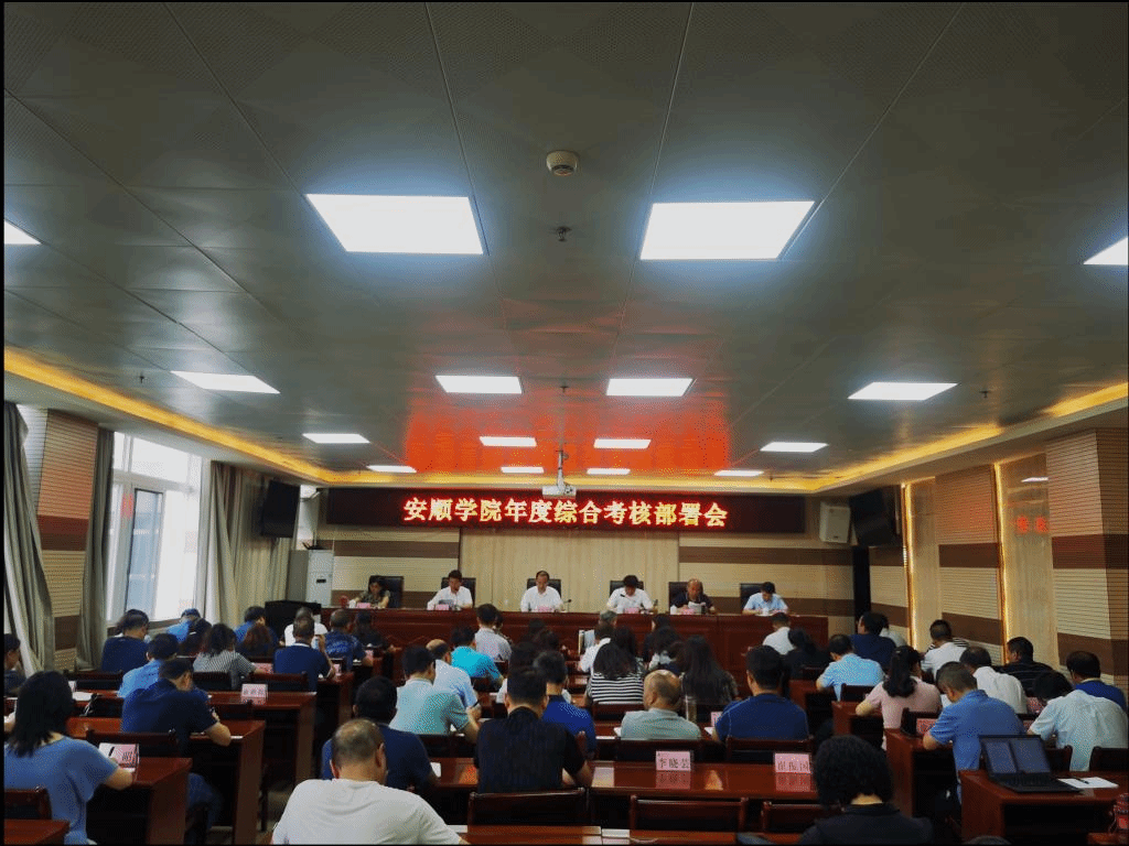 7月15日上午,安顺学院年度综合考核工作部署会在特教大楼七楼会议室召开。安顺学院党委书记罗荣彬,党委副书记、校长陈云坤,党委副书记陶文彩、副校长郭本华、副校长韦英、副校长张来出席会议,各二级学院党委书记、院长,各职能部门主要负责人参加会议。会议由陈云坤校长主持。