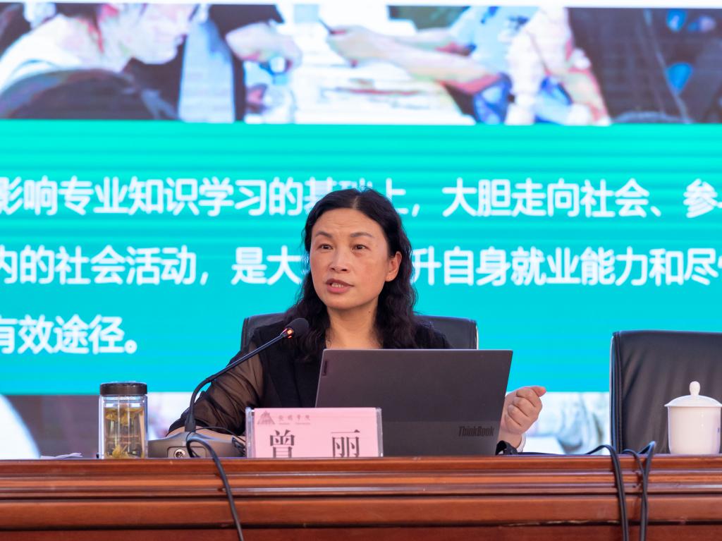 曾丽强调,开学就业第一课,既是一堂就业指导课,也是一堂思想政治教育课。同学们应当树立正确的就业观和择业观,科学谋划个人职业生涯,明确自己的求职路径,把个人理想追求融入民族复兴伟大征程,成为勇担时代使命的新时代好青年。