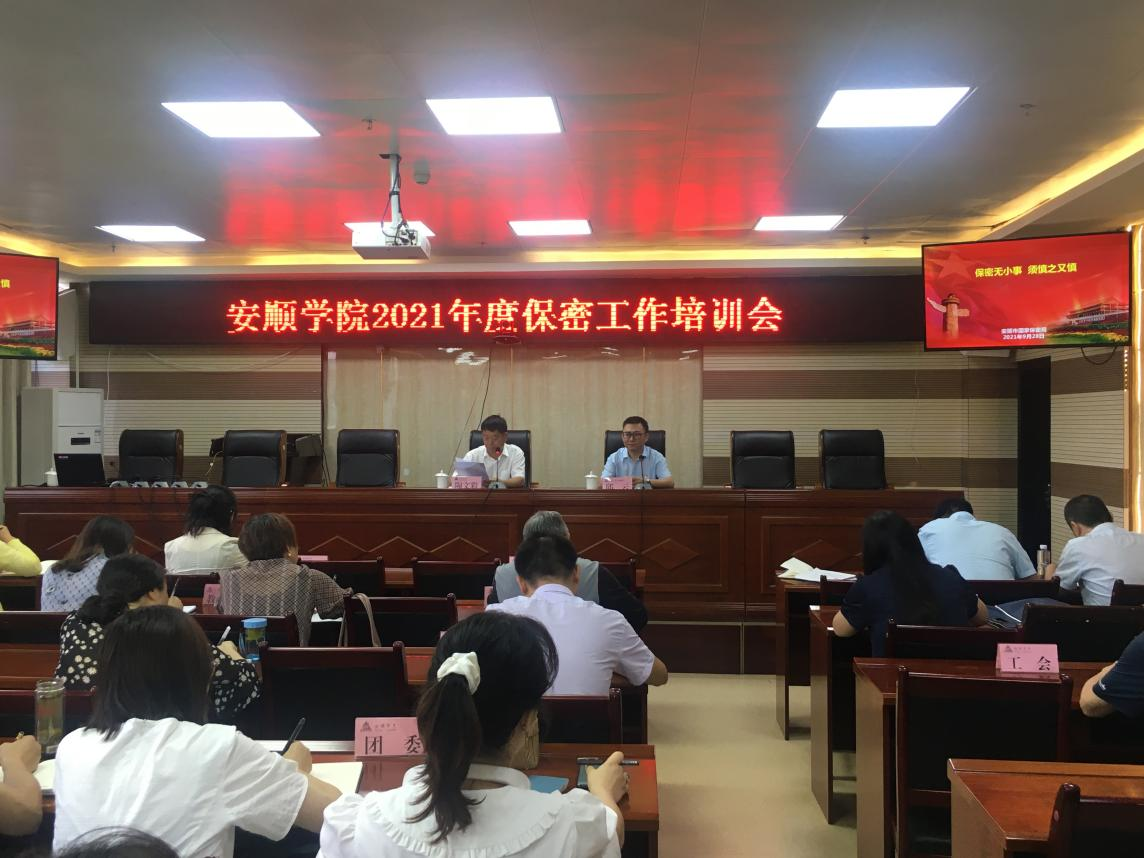 9月28日上午,安顺学院保密委办公室在特教楼七楼第三会议室召开保密工作培训会,会议邀请安顺市保密局技术检查中心副主任邱云作专题讲座,安顺学院党委副书记、校保密办主任陶文彩主持会议并讲话,学校各部门(单位)保密工作负责人和保密工作员参加会议。