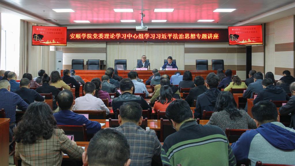 11月5日下午,安顺学院党委理论学习中心组举办学习习近平法治思想专题讲座,邀请贵州蕴诚律师事务所副主任刘钢律师作题为《学习贯彻习近平法治思想 切实加强高校合规建设》的专题讲座。学校领导,副处级以上干部参加学习。讲座由党委副书记陶文彩主持。