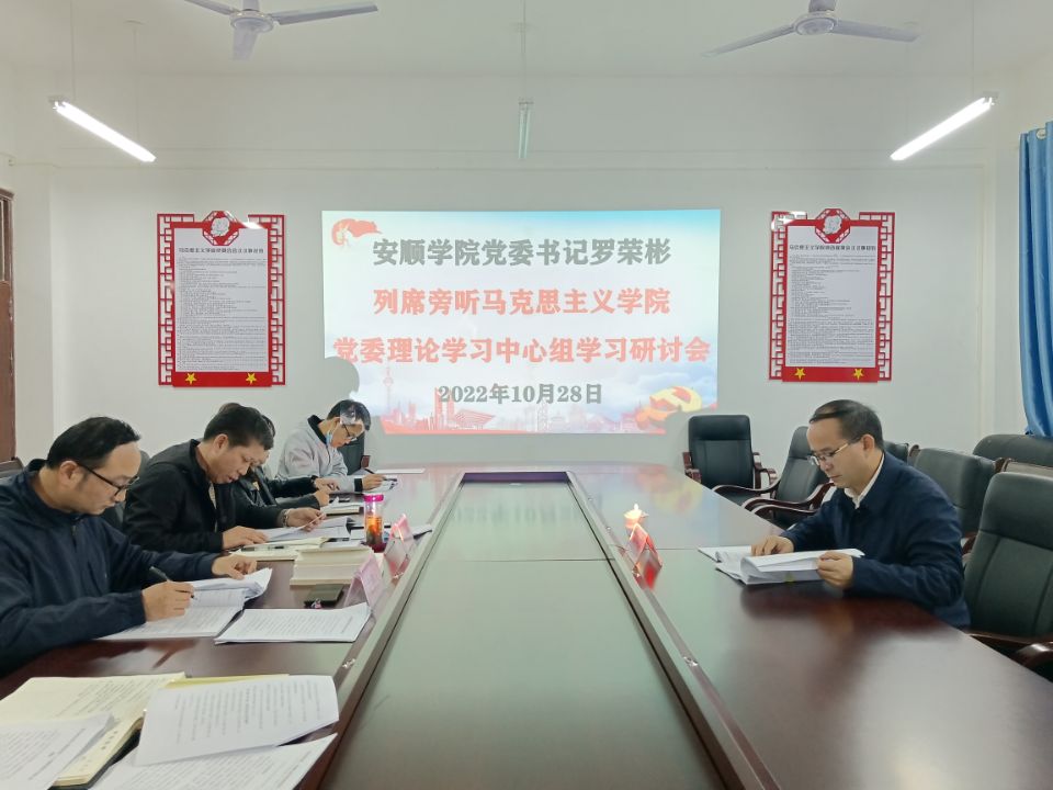 安顺学院党委书记罗荣彬(右)列席旁听马克思主义学院党委理论学习中心组“学习党的二十大精神”专题学习研讨会
