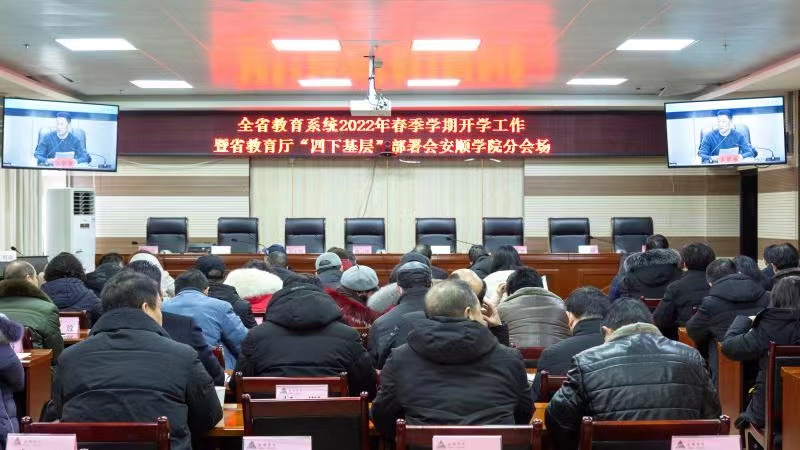 2月24日下午,全省教育系统2022年春季学期开学工作暨省教育厅“四下基层”部署视频会在贵阳召开,省委教育工委副书记、省教育厅党组书记、厅长邹联克出席会议并讲话。我校在特教大楼会议室设安顺学院分会场。全体在家校领导,各部门(学院)主要负责人参会。