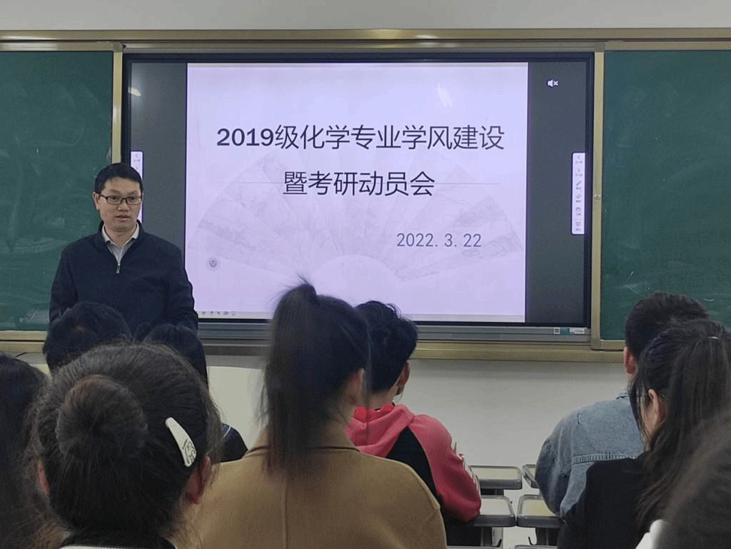2022年3月22日下午,安顺学院副校长张来作为化学化工学院2019级化学专业班级导师深入班级召开学风建设暨考研动员主题班会。