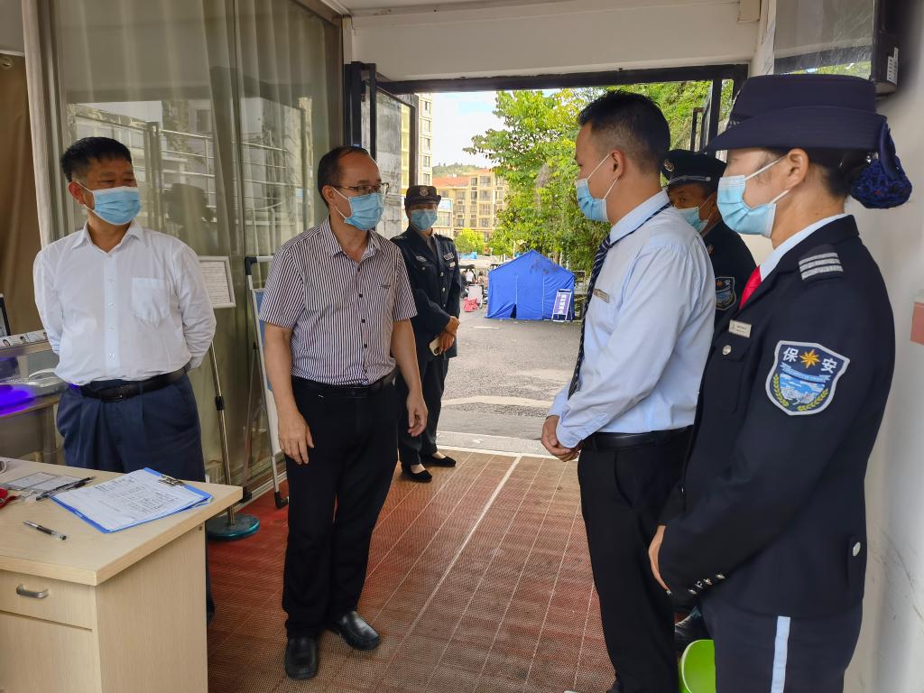 罗荣彬一行深入校园防疫各卡口、核酸检测点、学生宿舍、餐厅等关键场所,对疫情防控工作督导检查,看望慰问一线工作人员,听取了相关部门的工作汇报,详细了解校门出入管理、物资供应保障、核酸检测等情况。