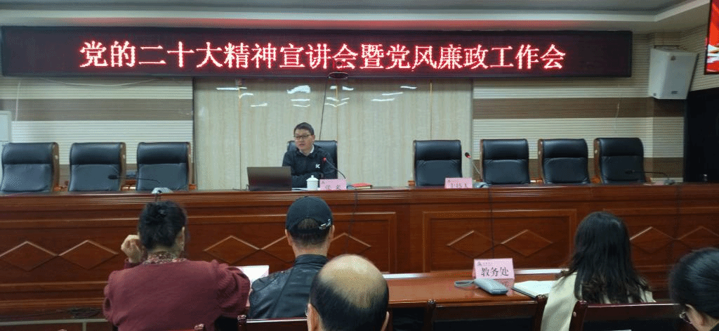 2022年11月24日上午,张来副校长在特教大楼七楼第三会议室组织召开党的二十大精神宣讲会暨党风廉政工作会。教务处、试验区发展研究中心、科研处、实验管理中心、《安顺学院学报》编辑部、屯堡文化研究中心、省级人文社科基地(贵州省高校乡村振兴研究中心)、旅游与文化产业研究中心全体人员参会;农学院、化学化工学院、资源与环境工程学院、旅游学院党员干部以及部分教师代表参会,会议由科研处处长石恪主持。