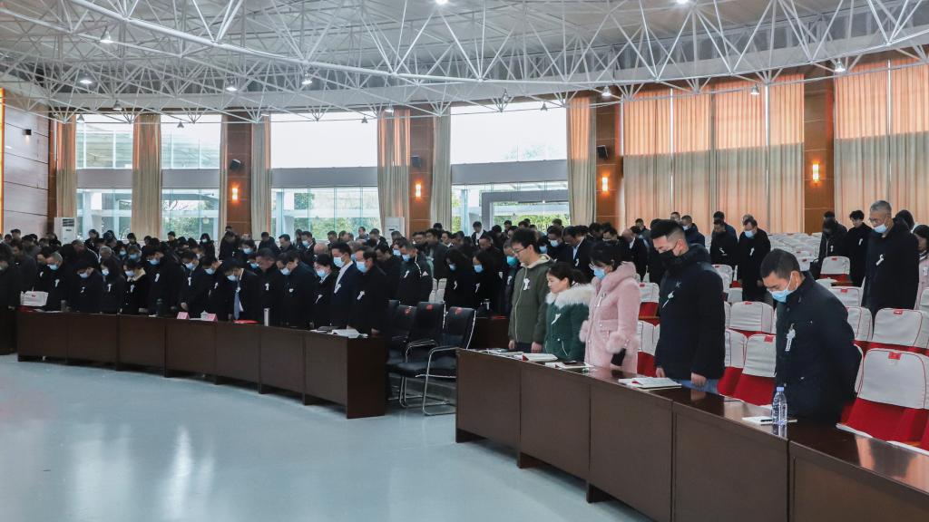 处科级干部、党务干部在学术报告厅沉痛哀悼江泽民同志