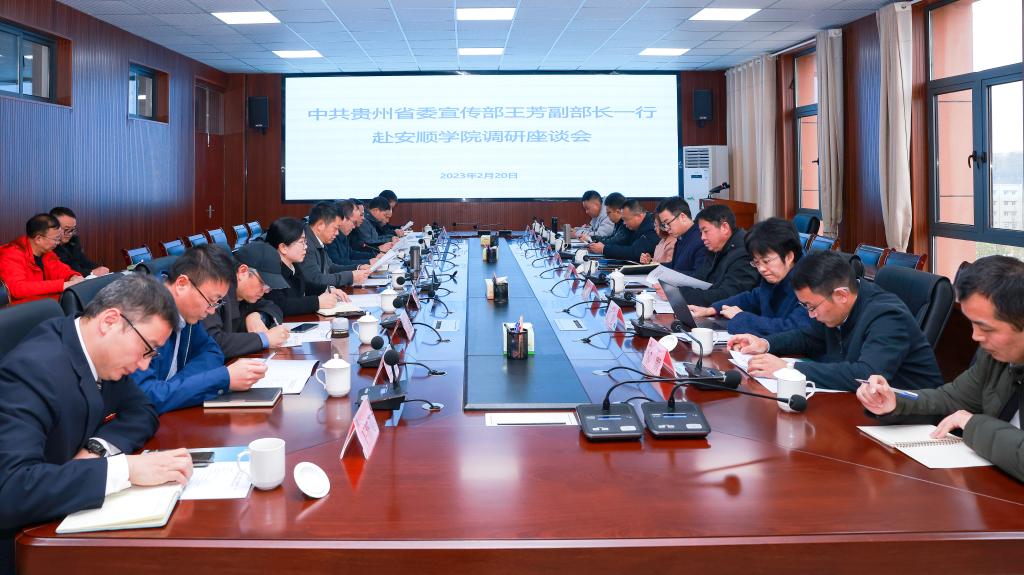 调研座谈由陶文彩主持,会议议程共四项,一是罗荣彬致欢迎词,罗荣彬详细介绍了安顺学院基本情况及“更名转型”推进情况,并对王芳一行调研表示热烈欢迎。二是张来围绕调研的七个方面内容分别进行了汇报。三是与会领导进行座谈交流,调研组分别对安顺学院下一步如何更好的开展工作进行了指导。四是王芳同志讲话。王芳充分肯定了安顺学院近年来取得的成绩,并就下一步工作提出重点要求,一是要坚持正确的政治方向,把牢立德树人的根本任务;二是要立足贵州实际,社科理论研究要更加聚焦中国式现代化贵州实践研究;三是要立足安顺特色、为传承贵州文脉做出安顺应有的贡献;四是紧抓安顺学院转型升级更名贵州文化旅游学院的契机,推动学院高质量发展。最后,罗荣彬表示,要积极落实好王芳同志及调研组其他同志的调研指导要求,进一步推动安顺学院各项工作再上新台阶。(文/图:宣传部 白波/王键)