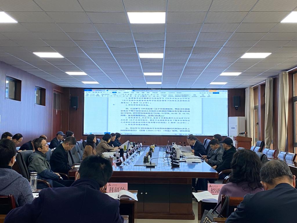 会议传达学习了习近平总书记近期有关重要讲话精神;全国政协十四届一次会议和十四届全国人大一次会议精神;《中国共产党普通高等学校基层组织工作条例》精神;《中共中央办公厅印发〈关于坚持和完善普通高等学校党委领导下的校长负责制的实施意见〉》精神;《中央纪委〈关于交通运输部、国家卫生健康委有关下属单位借培训之名组织公款旅游问题及教育警示的通报〉》精神;《国务院关于支持贵州在新时代西部大开发上闯新路的意见》(国发〔2022〕2号)精神等,并提出贯彻落实意见。